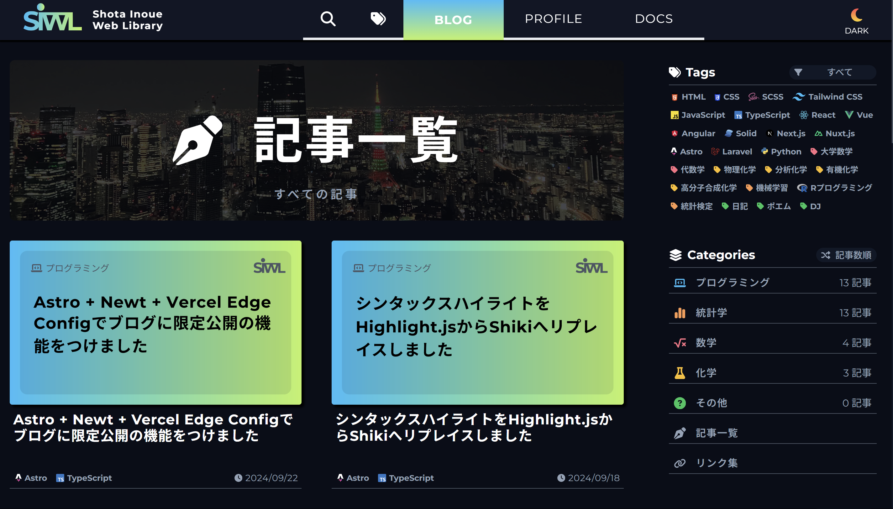 Computational Chemistry Student / Web Frontend Developer計算化学の大学院生 / Web フロントエンド開発者です。研究では分子動力学 (MD)、量子化学計算、機械学習を扱っています。Web 開発は趣味として手すさび程度にやっていますが、その知見が研究活動に活きることがあるのが地味にうれしいところです。